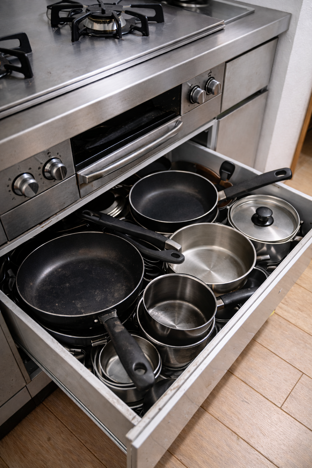 - 使わない鍋・フライパンが引き出しに眠っている
